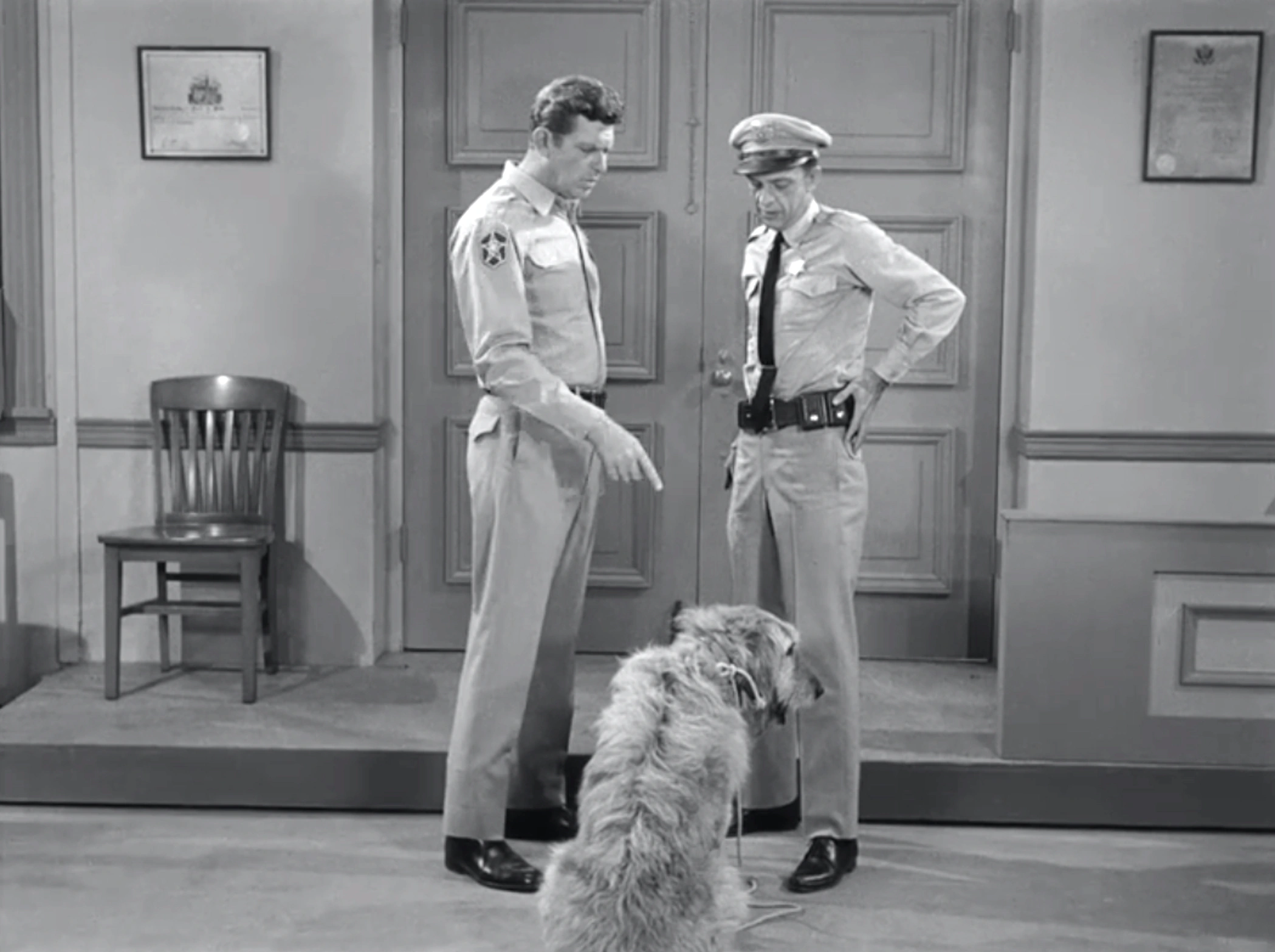 Barney's latest addition to the force is Blue, a dog he attempts to train as a crime-fighting Bloodhound. The whole scheme backfires when Barney leads Blue to a criminal and the dog likes the lawbreaker better than the law enforcer. Blue comes through eventually, but only by accident. Blue hates the sound of the dog whistle, so Andy tricks the convict into blowing it, prompting Blue to attack him, enabling Andy and Barney to nab their man.