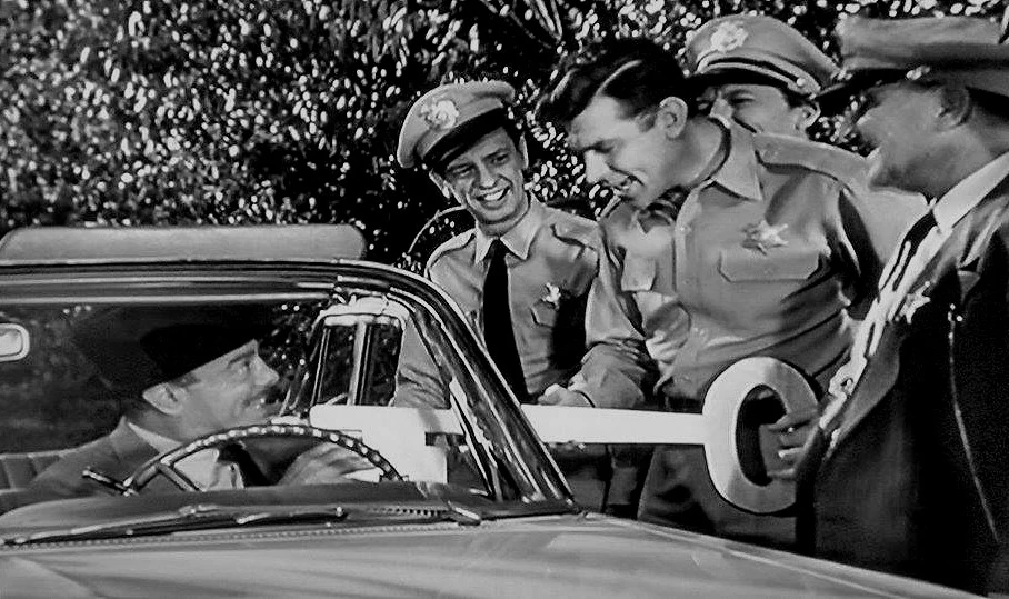 While Davis freshens up in his hotel room, Floyd calls Andy away from his stakeout to discuss details of the Founders' Day Pageant. Left alone, Barney decides to confront Davis, and gives a passive-aggressive speech about how people should be able to trust others. Davis seems greatly moved, and Barney feels like he got through to him when he leaves his gold watch on the table and Davis leaves without taking it. He reports to Andy, only for the two of them to realize all Barney's passkeys to the stores and shops are gone. While the rest of the town watches the pageant, they hunt through the empty shops and track down and arrest Davis, whom they catch in the act of cleaning out the local jewelry store. Davis is put behind bars for a lengthier sentence due to how many expensive items he stole. As a parting shot, he swipes Barney's badge, but Andy spots it right away and Barney angrily demands it back.