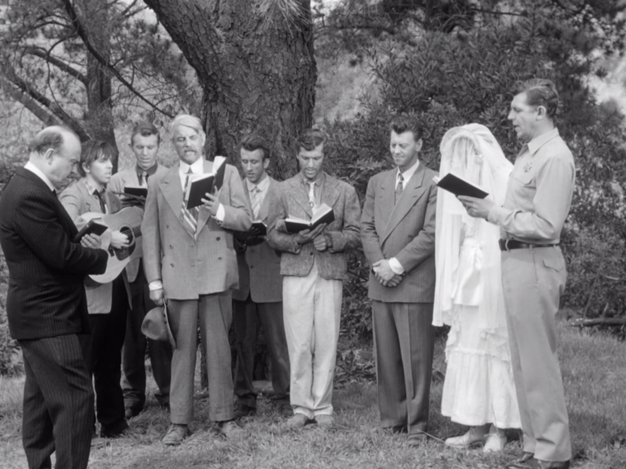 Andy and Barney visit The Darlings to rid them of Ernest T. Bass, who has his mind set on marrying Briscoe's daughter, Charlene. Andy, as Justice of the Peace, already married Charlene to Dud Wash, but as Andy is not a preacher, Ernest T. Bass doesn't believe it counts and comes courting her all hours of the night and day. He continues to be a bother after Andy and Barney arrive, and between his antics and the Darling boys' snoring, the lawmen find it impossible to sleep. The next day, the circuit preacher is due to come by, so Charlene and Dud prepare for a proper 'preacher wedding' to get Bass to stop. Charlene appears in her wedding gown, which Mr. Darling says makes her look just like her "Maw.” Ernest. Bass throws a rock through the window, with a note suggesting he plans to kidnap Charlene before the wedding. Andy hatches a plan; Barney wears the wedding dress, with the veil masking his face, during the wedding ceremony. When Ernest T. Bass kidnaps what he thinks is Charlene, Charlene hurries out of the bushes she was hiding in and quickly renews her vows with Dud. By the time Ernest T. Bass realizes the truth and angrily pursues Barney back to the house, the wedding is over. Ernest T. Bass admits defeat, but warns Dud to take care of Charlene, or else he’ll call that “Lady Sheriff.”