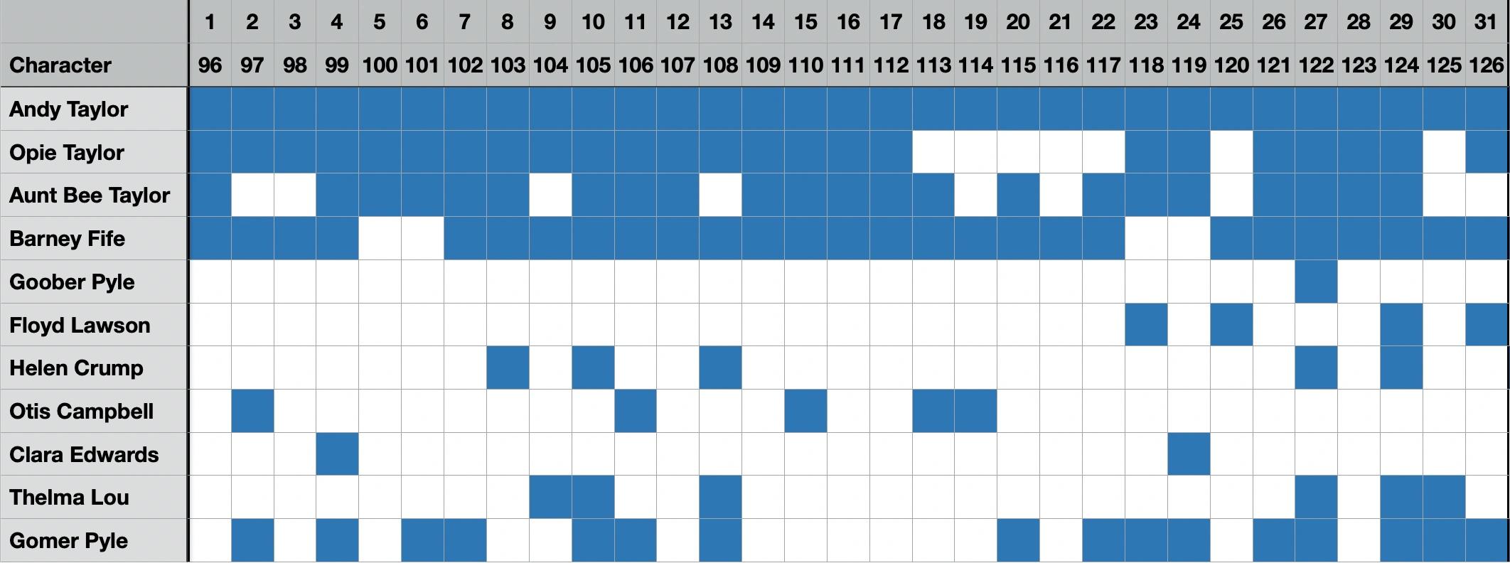| Gomer has a date with Thelma Lou's cousin Mary Grace. | ||||